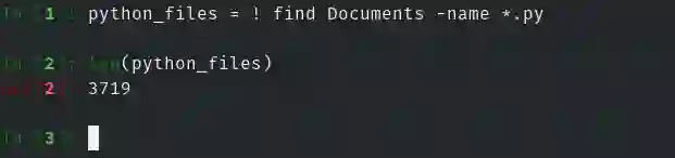 另一个很酷的功能是使用 ! 字符执行系统 shell 命令的能力。然后可以在 IPython shell 中引用该命令的结果。