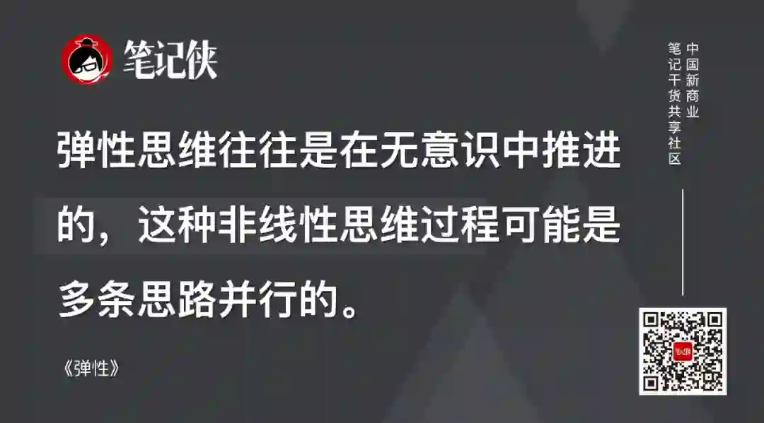 相反,弹性思维往往是在无意识中推进的,这种非线性思维过程可能是多条思路并行的。