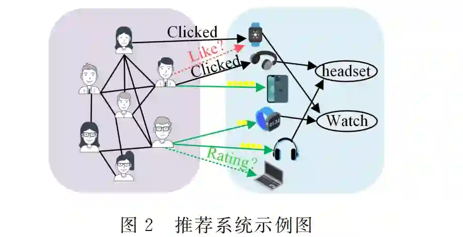 随着互联网技术的高速发展以及移动终端的全面普及, 互联网中的信息量呈指数级增长.互联网给用户提供海量资 源的同时,也给用户带来了信息过载的问题[1G2],即用户很难 在众多内容中快速、高效地筛选出自己感兴趣或者对自己有 意义的内容.推荐系统通过主动向用户推荐其感兴趣内容,帮助用户 过滤掉许多不感兴趣或者不相关的内容,从而有效地缓解信 息过载的问题,使用户能更加便捷地浏览感兴趣的内容.因 此,推荐系统被广泛地应用在许多企业的服务中,已逐渐成为 企业吸引用户不可或缺的工具.针对不同的应用场景,推荐 系统也演变出不同的推荐任务,其中包括线上购物推荐(如 Amazon、天猫),社交媒体推荐(如微博、抖音)等,为 人 们 的生活带来极大便利的同时,也极大地影响着其生活方式[1].