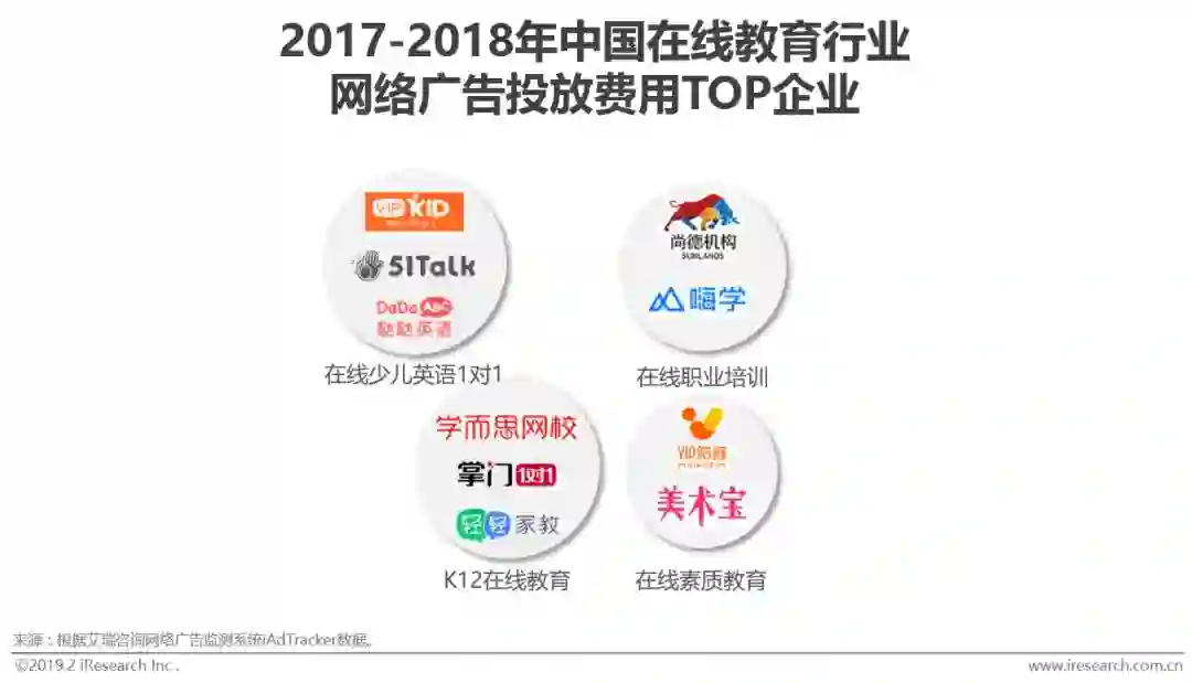 网络广告投放费用较高的企业主要集中在在线少儿英语1对1、K12在线教育、在线职业培训、在线素质教育4个领域。背后的主要原因是在线教育行业处在品牌争夺期,在资本的加持下正在上演一场激烈的营销大战。