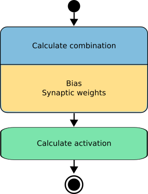 注意,偏置对激活函数净输入的增减取决于其正负。 偏移有时被表示为连接到固定为+1的输入的突触权重。