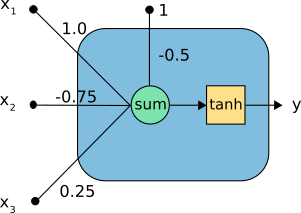 y = tanh(-0.5 +(1.0·-0.8)+(-0.75·0.2)+(0.25·-0.4))