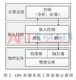 如图2所示,CPS是一种虚(信息空间)实(物理空间)深度融合的智能控制系统。利用嵌入式软件,从被控对象(传感器、仪器、仪表、在线测量设备等)和被控环境中采集信息,实现感知功能,通过上层的计算功能分析被控对象和环境的当前状况,最后再根据已建立的模型计算和控制规则形成决策结果,向执行器发出操作指令。在具体的应用中,以上过程是一个“感知→分析→决策→执行→”的循环往复过程,直到实现既定的控制目标。另外,一般由多个可控的物理实体根据生产流程构成一个具体的生产系统,不同物理实体的集成和控制需要通过信息空间中的通信网络或CPS总线来实现。
