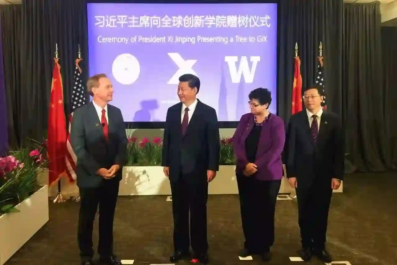 两年前,习近平主席访问美国的第一站就来到了西雅图,非常高兴的是在这个过程中邱校长也一起来到了这里。期间,习主席祝贺我们全球创新学院(GlobalInnovation eXchange institute,简称GIX)的成立,并向我们赠送了一棵水杉,寓意我们要茁壮成长。能够有这样的机会我们非常的激动和荣幸。
