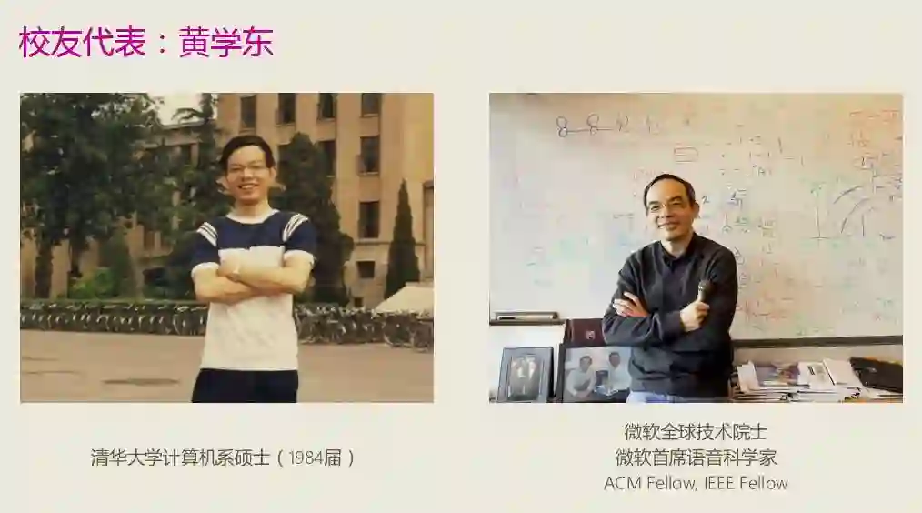 今天大家都在说人工智能,好像不提人工智能就会落后。人工智能能够发展到现在主要有三个原因,我一直讲叫“两大一精”,大数据、大计算和精准算法。首先我来介绍一下黄学东学长在微软的工作,他是清华大学计算机系的硕士,现在是微软语音和对话研究团队负责人。黄学东博士在微软二十多年来一直在钻研语音识别,近几年取得了非常优异的成果。