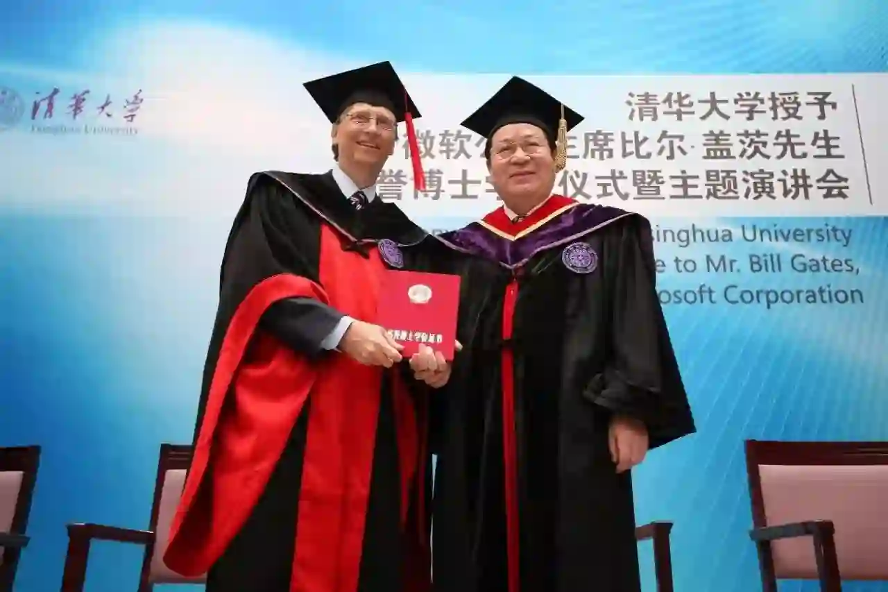 2007年,比尔·盖茨先生被清华大学授予了名誉博士,成为了我们大家的校友。盖茨一直以来都和清华保持着非常良好的关系,就在昨天我也有幸和清华大学的邱校长共同讨论了未来微软和清华可以一起发展的机会。