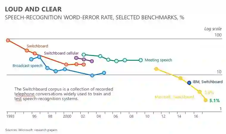 去年十月,黄学东博士及其团队把语音识别的系统错误率降到了5.9%,当时大家觉得这已经是接近人类的水准了。然而,今年八月他们团队把错误率再次降低到了5.1%,这是可以完胜专业速记员的误差水平,是具有里程碑意义的一项突破。