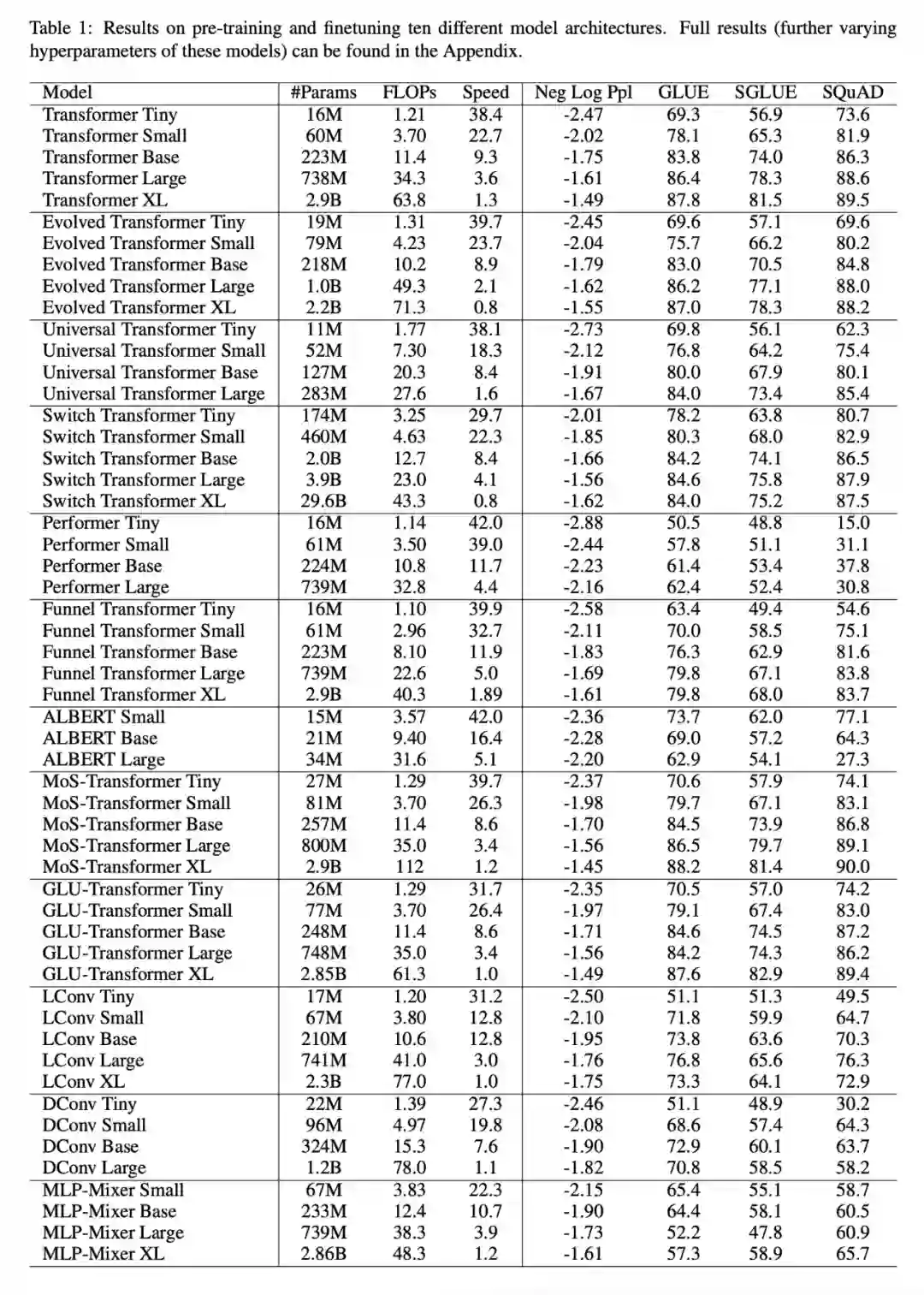 在多个计算区域和范围内(从 1500 万到 400 亿参数)预训练和微调了十种不同的模型架构