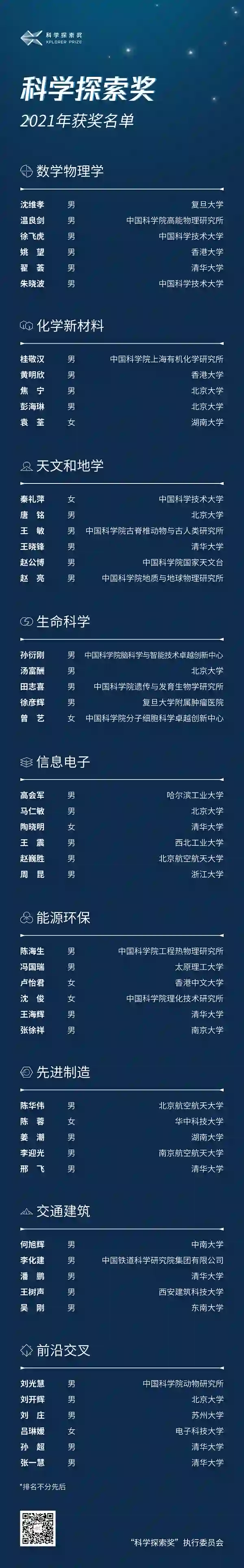9月13日,第三届“科学探索奖”获奖名单正式揭晓,50位青年科学家“榜上有名”,其中