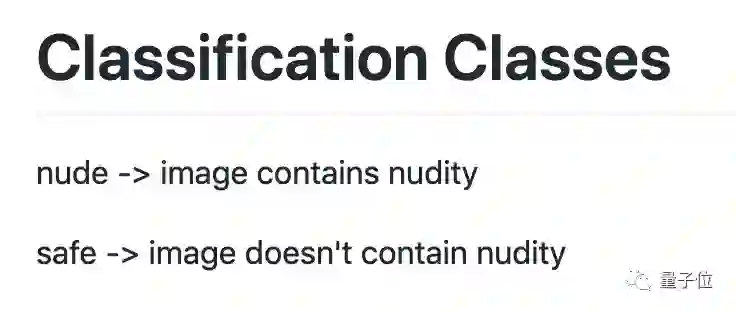 图像分类模型很简单,能区分两个类别:nude和safe,也就是露和不露,堪比经典的hotdog/not hotdog。