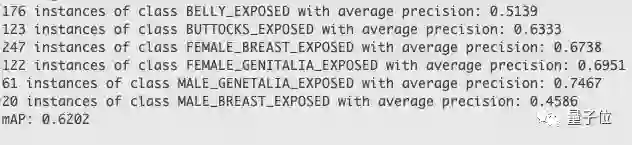 目标检测模型则能检测6个类别:不分性别的腹部、臀部,和区分了性别的不可描述部位。