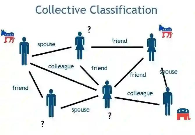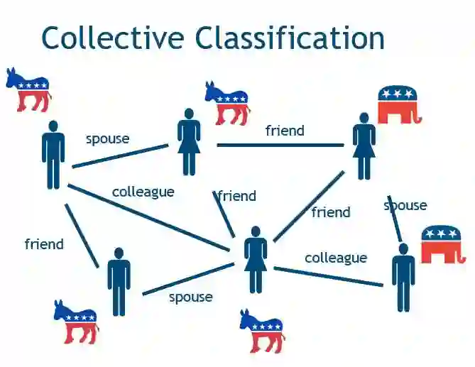 我想首先和大家说说三种常见的图数据推理模式,最简单的一种叫做协同分类。如果一个图的部分结点已经有标签,我们就可以推理出其结点的标签。社交网络就是很典型的例子,其中包含着非常丰富的信息和联系,通过信息和数据去做推理可以得出某位朋友的饮食习惯或其他偏好。基于数据在已有的信息,设置不同的权重,我们能够做一些简单的推理,充分利用本地信息和标签,再去推理出一些之前没有加入的标签信息。