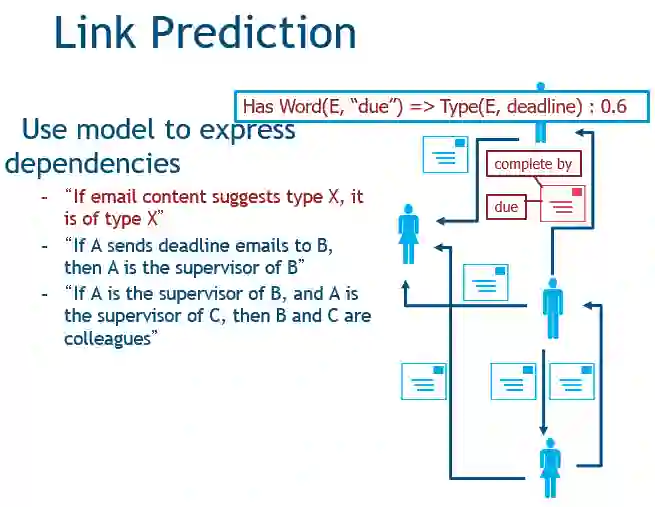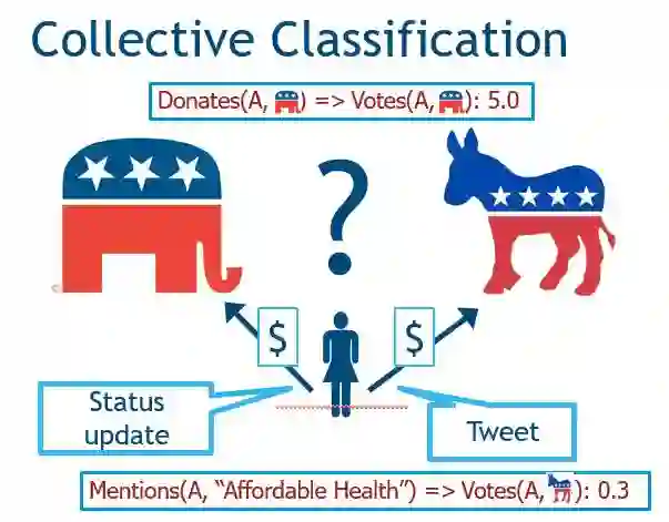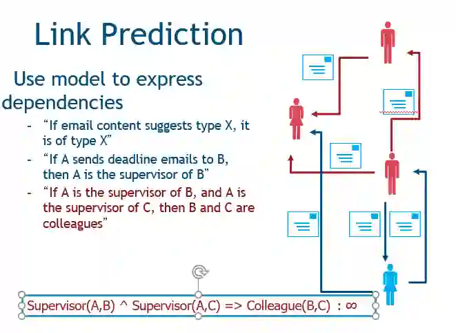 目前,统计学研究也在开发相应的算法,例如概率性推理和关系推理。有一个工具叫概率软性逻辑PSL,它是一种概率编程语言,即用描述性的语言对图上的问题进行描述。这个基础是,我们有属性、关系的逻辑表示,还有规则和约束来捕捉他们的依赖关系。PSL是一个这样的存在,它根据模板和数据来定义他们之间的概率分布用于推断。