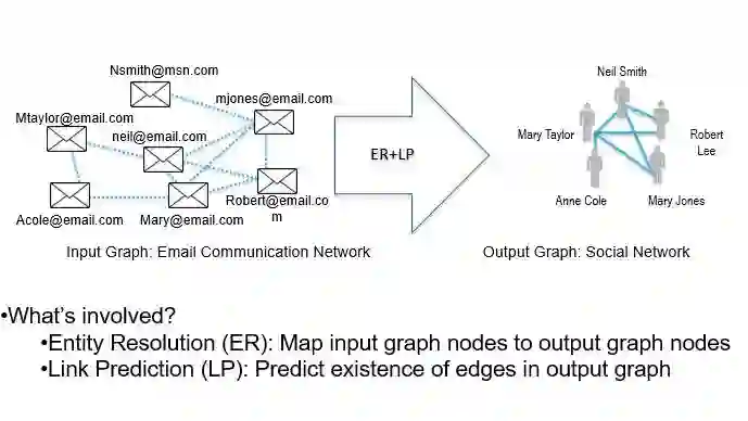 第三种是实体解析,任务是确定哪些结点指向同样的实体,我们就能从中获得一些信息。