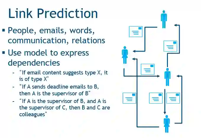 第二种叫做链接预测,我们不仅仅可以预测某一个结点的标签,还可以推断结点之间的链接。比如说有一个通讯网络,我们能够通过通讯信息推理出网络中所有人的层级,并通过不同种类的信息判断不同人之间的关系。