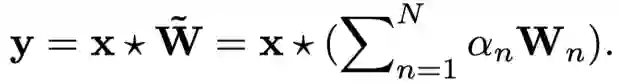 前面介绍的具有动态结构的网络往往需要特别的结构设计、训练策略或超参数调整等。另一类工作则保持网络结构在推理过程中不变,根据输入样本自适应地调节模型的(部分)参数,从而提升模型的表达能力。静态网络的推理过程可表示为
