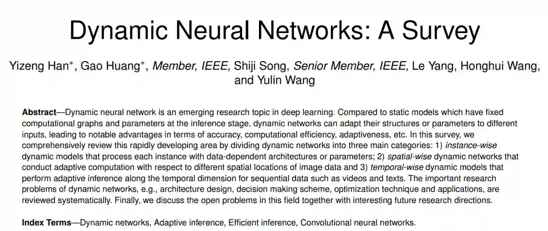 本文对近年来引起较大研究热情的动态神经网络 (Dynamic Neural Networks) 做了一个比较全面和系统的综述。