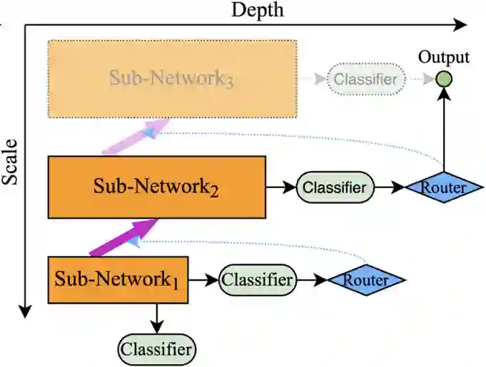 两个类型。另外,还有一类工作则是首先建立具有多条前向通道的超网络 (SuperNet), 然后采用一定的策略,对不同的输入样本进行