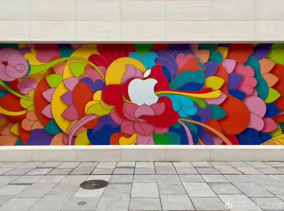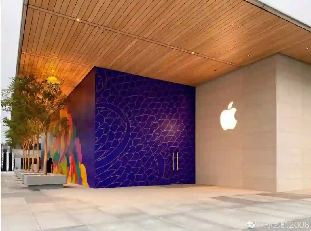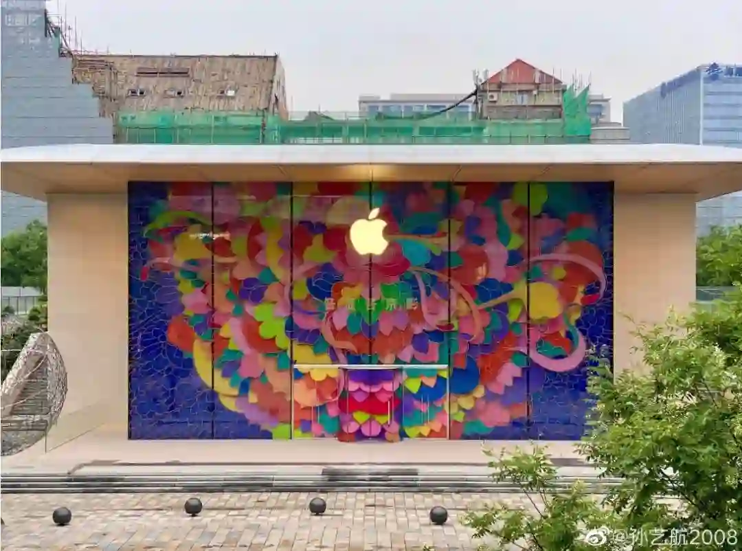 从微博用户 @孙艺航2008 拍摄的现场照片来看,这座位于旧三里屯 Apple Store 旁边的全新建筑已经装修完毕,虽然仍然处于围蔽状态,但外立面已经换上了「各显各京彩」的装饰主题贴纸,店铺两边的楼梯也已经种植了各种绿植。