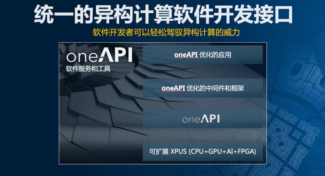 OneAPI简单来说,就是用来释放更多异构软件之间的性能非常重要的方式。