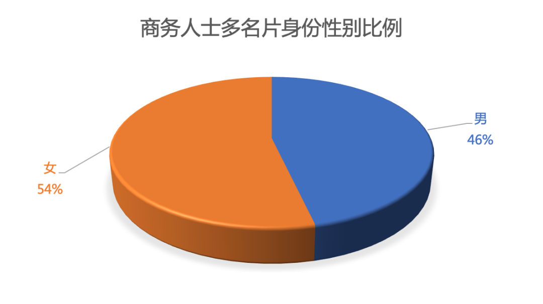 商务女性的多重身份比例高于男性,在递名片平台,54%的多重身份人士都是女性用户。