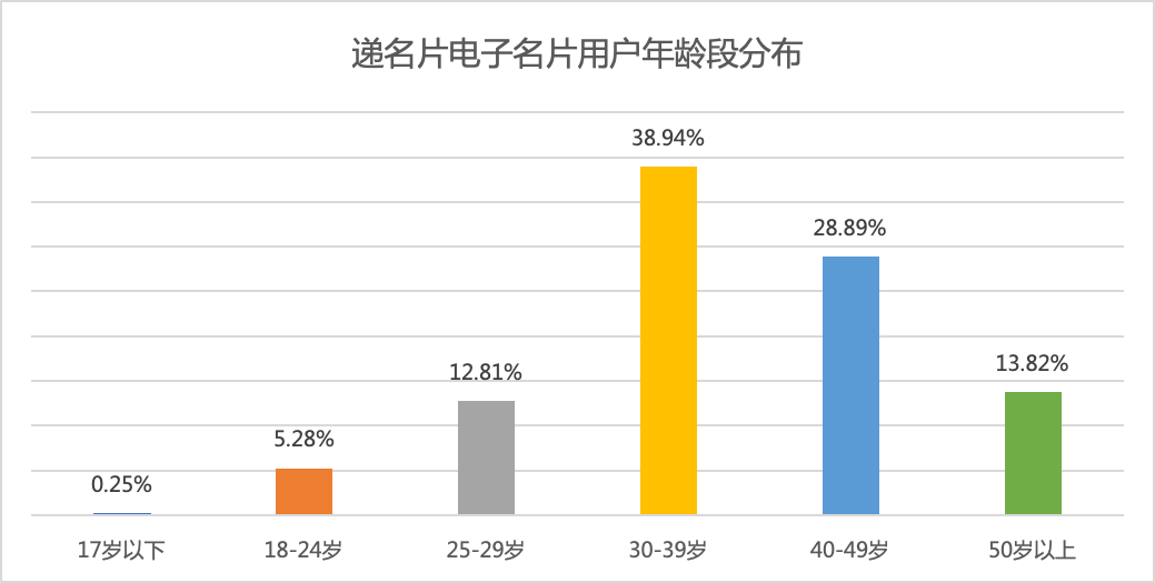 与大多数互联网产品不同,年轻人并不是电子名片用户的主力用户。