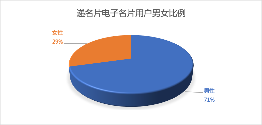 在性别比例上,71%的电子名片使用者是男性,女性用户占比仅为29%。