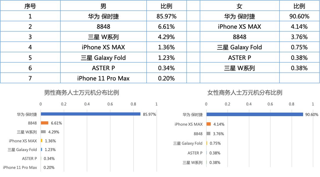 苹果、华为两强瓜分81%商务用户,万元机市场华为一家独大;女性选苹果、男性选华为