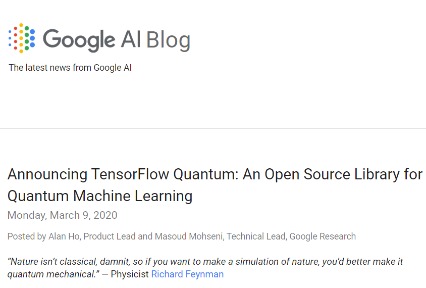 谷歌在其博客上宣布推出TensorFlow Quantum