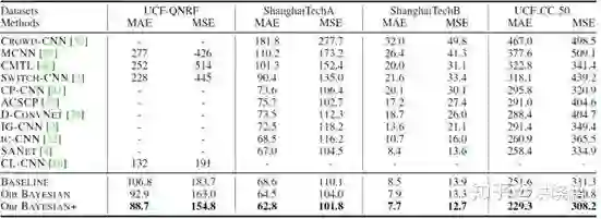 通过与SOTA方法在四个主流人群计数数据库上的比较,以MAE和MSE为指标的对比结果如下表1所示。