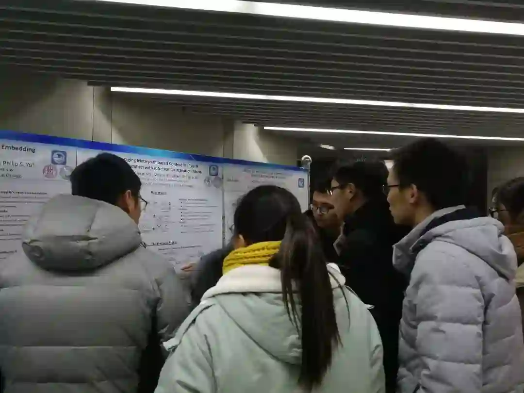 中午,进入Poster展示环节,由来自清华大学、中国科学技术大学、北京邮电大学的博士生们介绍他们最新发表在国际顶级会议和期刊上的论文以及开源工具,与会人员与论文作者进行了深入探讨和交流,现场气氛热烈。