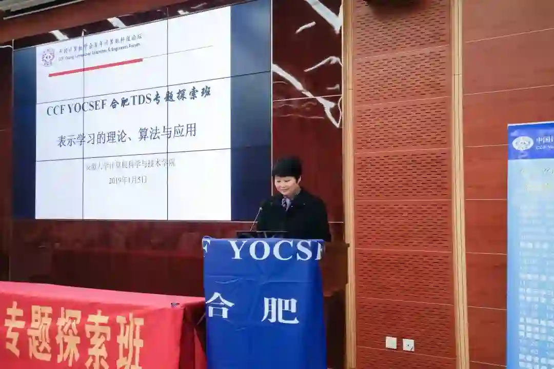 2019年1月5日,CCF YOCSEF合肥在安徽大学磬苑校区图书馆文典阁一楼报告厅成功举办TDS(Theme Discovery Symposium)专题探索班“表示学习的理论、算法与应用”,吸引了来自国内外高校、科研院所、企业以及全国各地YOCSEF分论坛等230余人参加此次探索班。本次专题探索班是CCF YOCSEF合肥2019-2020年度换届选举系列活动之一,由来自安徽大学的CCF YOCSEF合肥主席赵姝和来自合肥师范学院的CCF YOCSEF合肥副主席谢飞担任执行主席,邀请到了机器学习领域6位重量级的专家学者做报告,围绕表示学习的理论基础和最新研究成果,以及表示学习在社交网络、自然语言处理等领域的应用开展交流和讨论。
