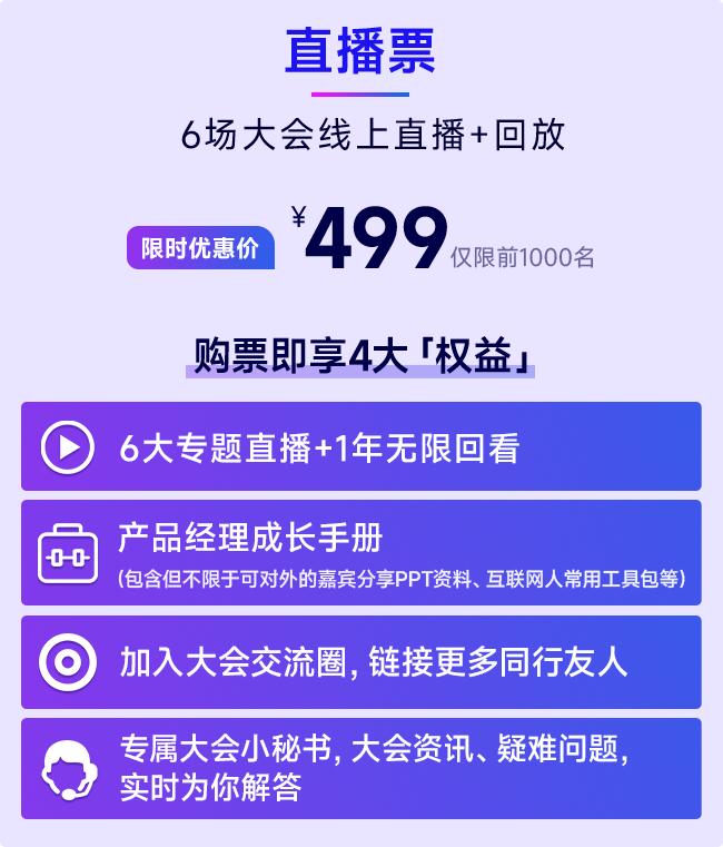 本次大会仅开放直播票,购买后即可收看完整的6个专场内容!