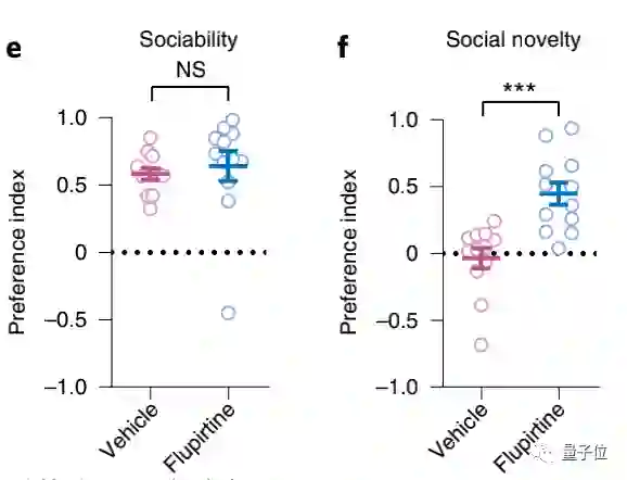 在这些“缺陷”小鼠出生后的第56天,通过检测显示,接受Flupirtine者的社会新事物的偏好指数和正常小鼠差不多。