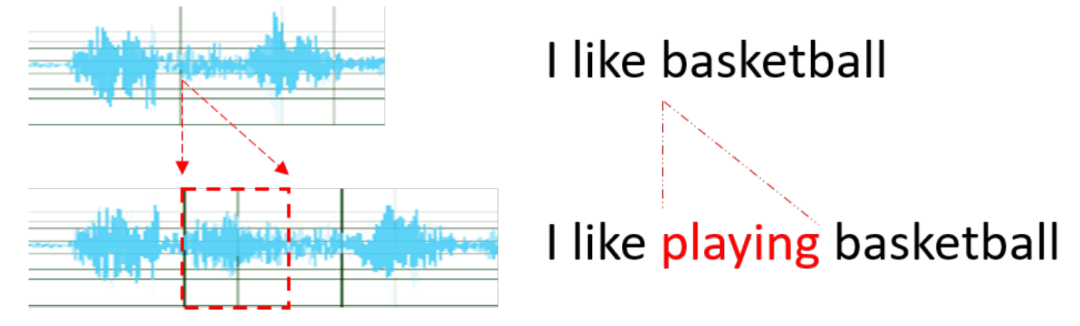 无论是演示视频、教学视频、会议录像还是记录生活片段的 vlog,在很多实际的应用场景中,人们常常需要重新录制语音(视频)或对语音(视频)进行编辑。因为拍摄的素材中往往会存在大量停顿和脱口而出、词不达意的语句,或者是冗余的内容。但由于声音的特性,我们没有办法在录音底本的基础上去修改字词,只能一帧一帧在剪辑上下功夫,因此声音的剪辑工作繁琐又充满挑战。如果拥有一个基于文本的语音编辑系统,可以通过直接编辑语音对应的文本,完成对语音(视频)的编辑,那么普通用户也能成为一个有创意的剪辑师,把一段冗杂的音视频变得清晰、自然又专业。