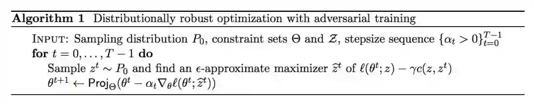 我们从分布式鲁棒优化的角度出发,提供一种对抗性训练过程,并在计算和统计性能上提供可证明的保证。我们假设数据生成分布 P0 附近的分布类别为 P,并考虑问题最小化 sup P∈P EP [ℓ(θ;Z)](θ∈Θ)。