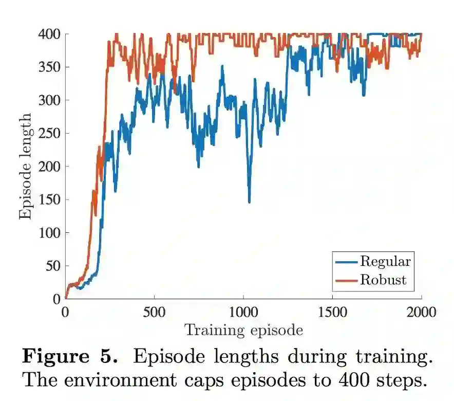 图 5. 训练中的 Episode 长度。纵坐标 Episode 长度的环境上限为 400 步长。