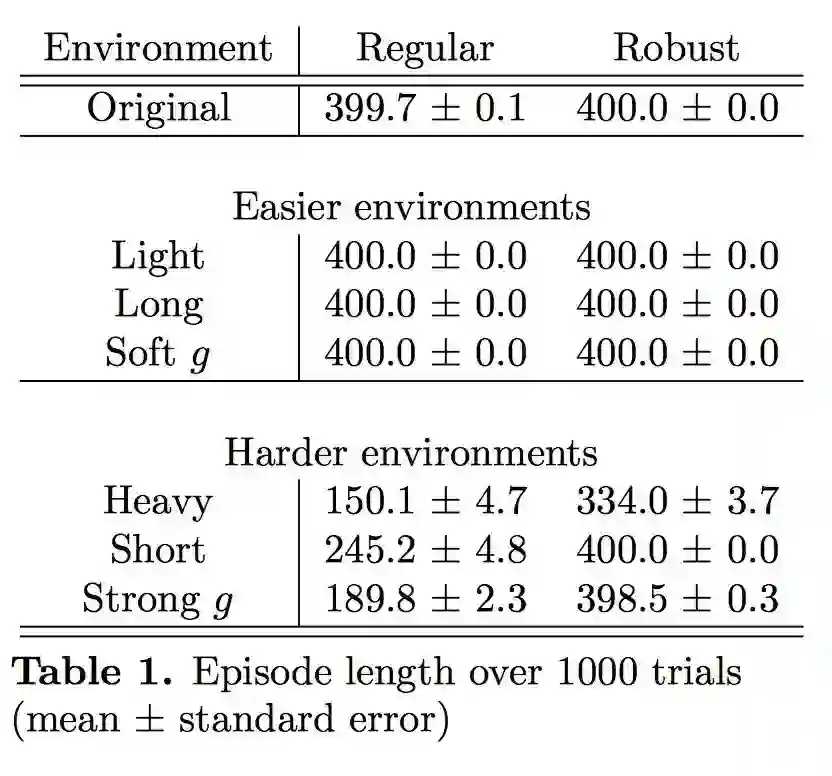 表 1. 1000 次实验后的 Episode 长度(平均数 ± 标准差)