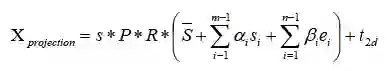 如上图所示 3DMM 的主要思想是:一张人脸模型可以由已有的脸部模型进行线性组合。也就是说,可以通过改变系数,在已有人脸基础上生成不同人脸。假设建立 3D 变形的人脸模型由 m 个人脸模型组成,其中每一个人脸模型都包含相应的脸型和纹理两种向量,这样在表示新的 3D 人脸模型时,就可以采用以下方式: