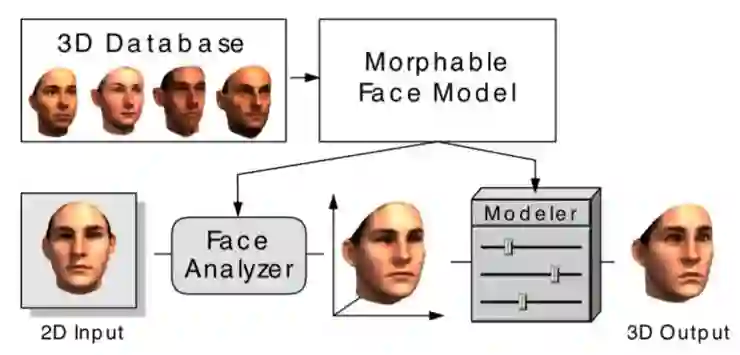 1999 年,瑞士巴塞尔大学的科学家 Blanz 和 Vetter 提出了一种十分具有创新性的方法——三维形变模型 (3DMM)。三维形变模型建立在三维人脸数据库的基础上,以人脸形状和人脸纹理统计为约束,同时考虑了人脸的姿态和光照因素的影响,生成的人脸三维模型精度较高。