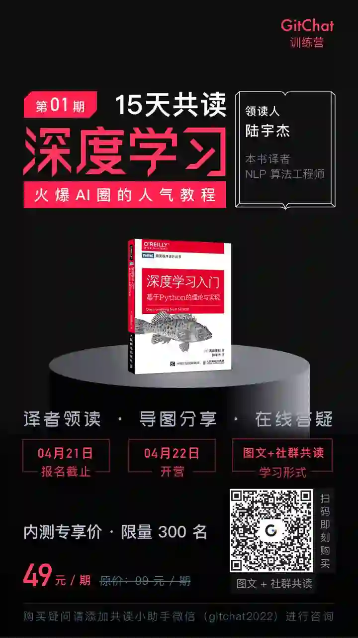 作为业内第一个深度学习的共读训练营,第一期限量招生 300 人,用于回馈本书的粉丝用户们。同时,还能与本书译者一道探讨交流,更有丰厚的助学金拿到手!