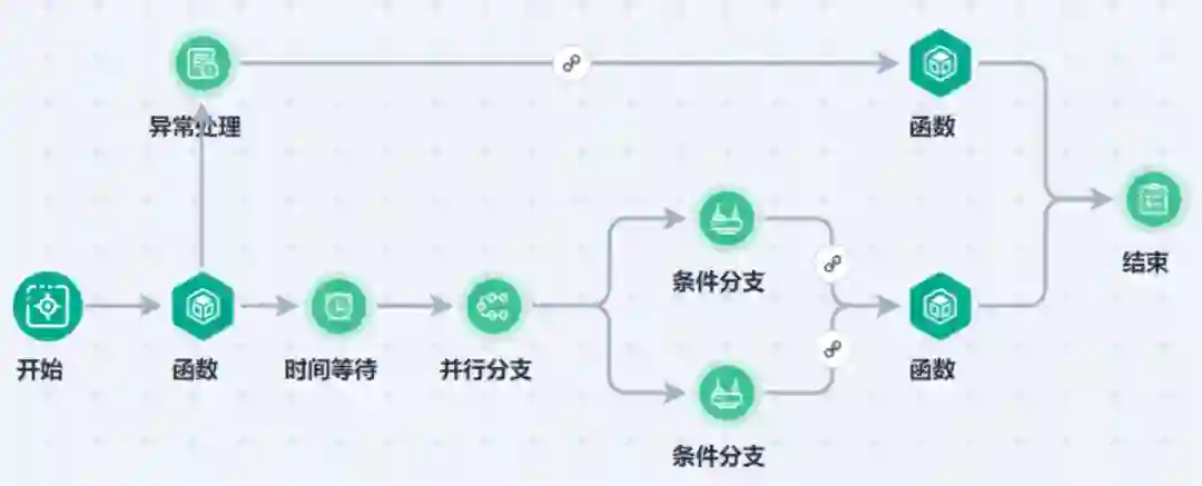 若应用函数的确需要提供多个功能,可以考虑将大函数分解为多个小函数,然后通过函数编排的方式实现整体逻辑, 如图5所示的FunctionGraph函数流功能。大函数分解也是Serverless计算中用户处理超时(timeout)等异常场景的最佳实践之一 [4]。