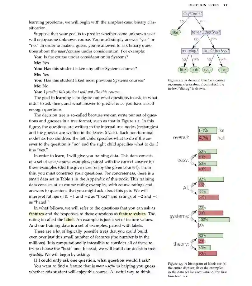 这本书的目的是提供一个通俗的和教学组织的领域介绍。这与大多数现有的机器学习文本形成了对比,它们倾向于按主题组织内容,而不是按教学方法组织(米切尔的书是个例外,但不幸的是,米切尔1997年版的《自然》越来越过时了)。这对于该领域的研究人员来说是有意义的,但是对于学习者来说就没那么有意义了。这本书的第二个目标是提供一个机器学习的观点,它关注的是思想和模型,而不是数学。避免数学是不可能的(甚至是可取的)。但是数学应该帮助理解,而不是阻碍它。最后,本书试图将依赖关系降到最低,这样读者就可以很容易地挑选要读的章节。当依赖项存在时,它们列在本章的开头。这本书的读者是任何知道微分学和离散数学的人,并且可以很好地编程。(学一点线性代数和概率也无妨)一个在第四或第五学期的本科生应该完全能够理解这些材料。然而,它也应该适合一年级的研究生,也许以稍快的速度。