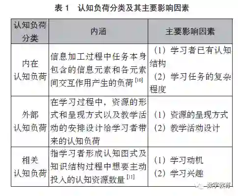 Sweller 将认知负荷分为三类:内在认知负荷、外部认知负荷和相关认知负荷[9],认知负荷的分类及其主要影响因素如表1 所示: