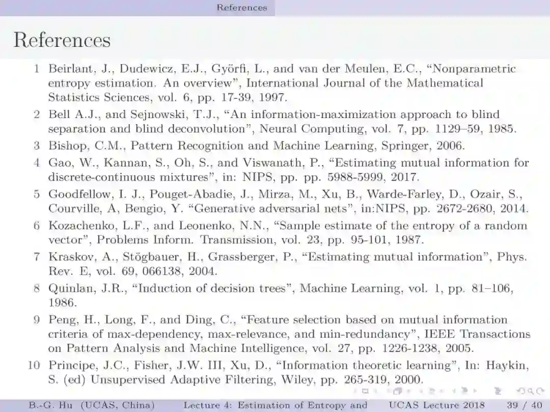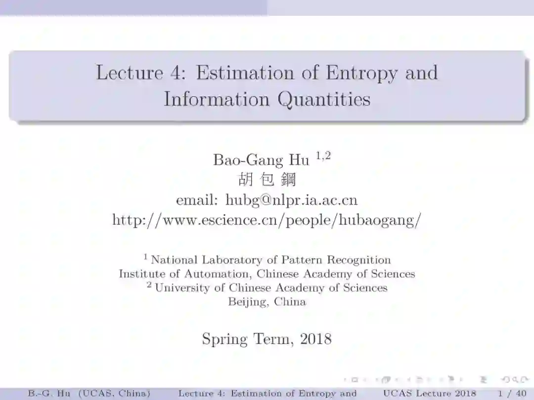 国科大UCAS《信息论与机器学习》课程,中国科学院自动化研究所胡包钢研究员