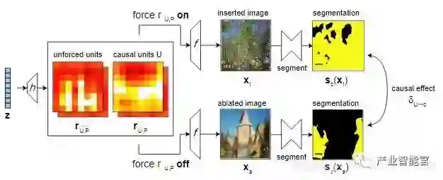 干预 — 在这一点上,我们已经确定了相关的类。现在,我们试图为每个类找到最好的分离方式。这意味着,一方面我们抑制非受迫单元,希望目标类将从生成的图像上消失。另一方面,我们扩大了因果单元对生成图像的影响。这样我们就可以了解到他们对目标类c的存在有多大的贡献。最后,我们从两个图像中分割出类c并进行对比。语义图之间的一致性越小越好。这意味着在一个图像上,我们完全“排除”了树木的影响,而第二个图像只包含一片树林。