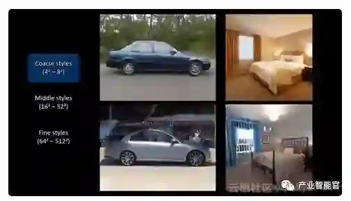 ·中间样式分辨率(分辨率162−322) — 较小比例的面部特征,如:发型样式的细节、眼睛;