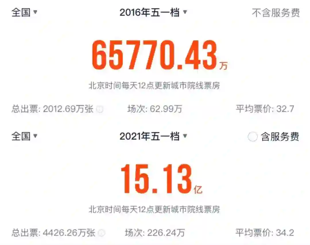 如果这个预测成真,那意味着今年五一档票房还不及中国影史最好成绩的三分之一。