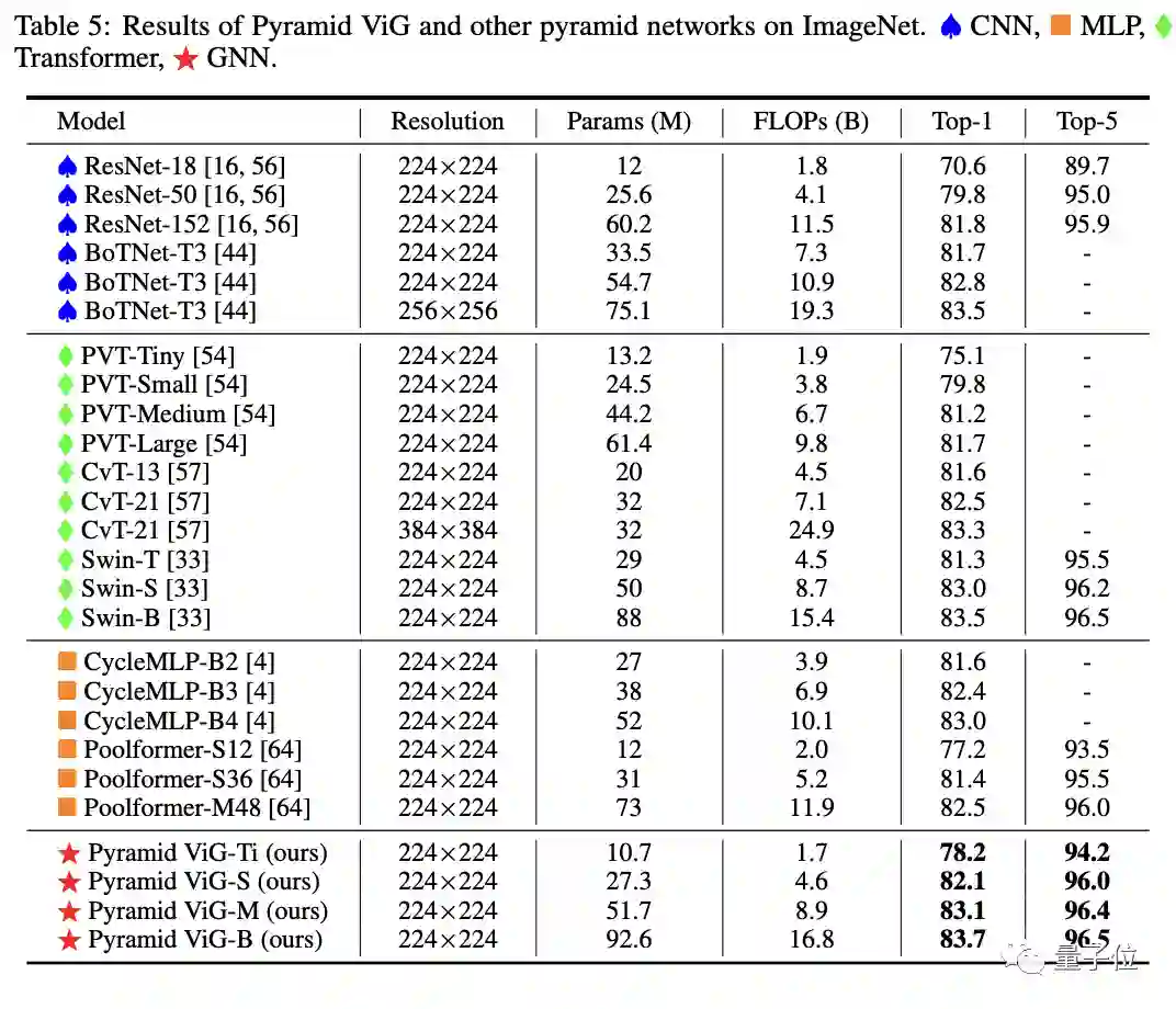 为了更准确评估ViG的性能,研究团队设计了ViT常用的同质结构(isotropic)和CNN常用的金字塔结构(Pyramid)两种ViG网络,来分别做对比实验。
