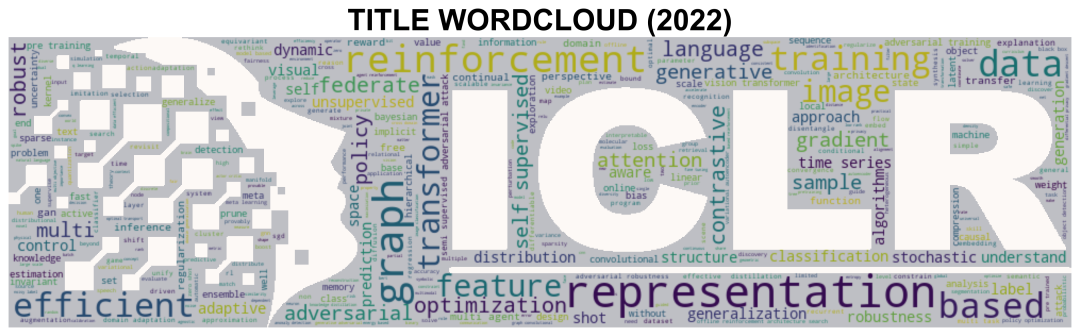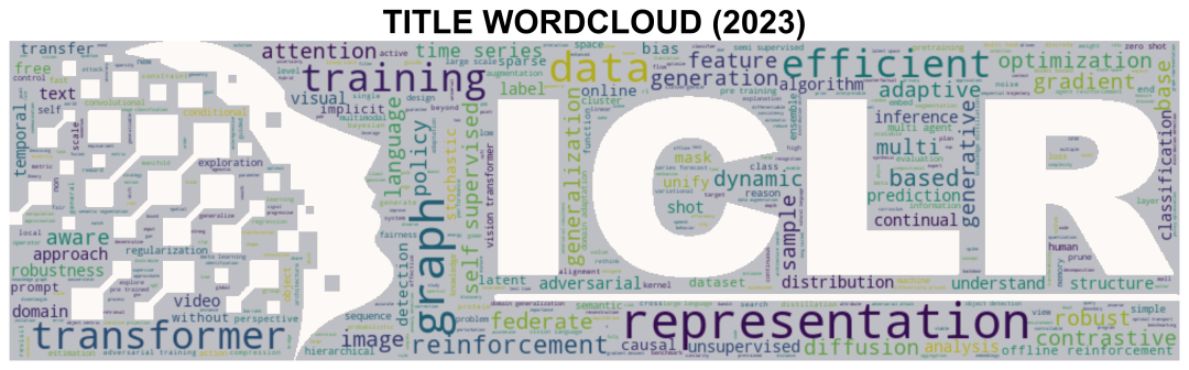 国庆期间闲得无聊勤勤恳恳地做了一次ICLR2023 Openreview的论文投稿分析,从OpenReview 网页抓取了论文数据,并做了2022和2023年论文关键词、标题高频词等信息的可视化比较。